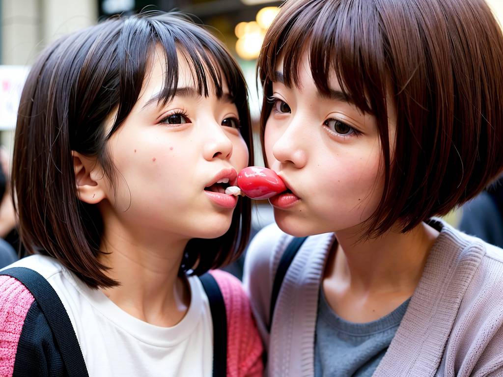 路上で、女の子のディープキス 加須市 2023年12月22日 撮影